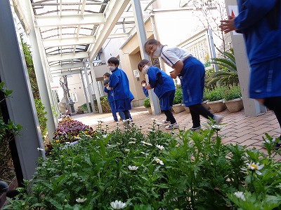 ノースポールなどの花ばなを見ながら、笑顔で教室に戻って行きました。