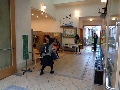 玄関では、校長先生が子ども達に手の消毒をしながら、一人ひとりに声をかけます。