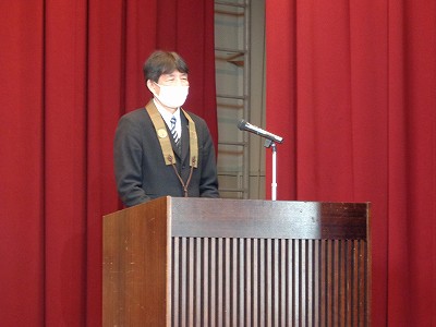 修了式後の退任式にて「お別れの挨拶」を頂きました。名残惜しい限りです。先生の今後のご健勝ご多幸をお祈り申し上げます。