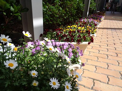 秋に植えた4種類の苗は、今、玄関前を彩っています。