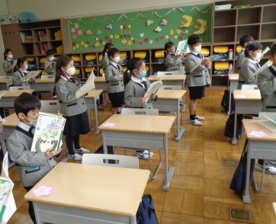 初めての午後の学習では、昼根っこタイムに国語の教科書を音読したり...