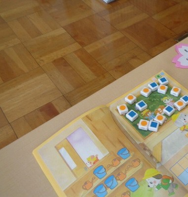 算数の教科書に数図ブロックをおいたりして、数のくらべっこをしました。