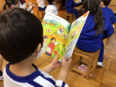 国語の時間に、図書室へ初めて行きました。自分の気になる本を探したり、読みきかせで聞いた本を発見して読んでいる姿がありました。