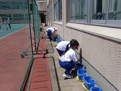 今日は「あさがおをうえよう」の1時間目で、植木鉢と土の用意をし、あさがおのたねの観察をして絵をかきました。いよいよ明日は「たねまき」です。