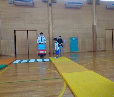 交通事故にあわないために、歩道の歩く場所や、横断歩道の渡り方についてお話を聞き、最後に実際にコースを歩いて練習しました。