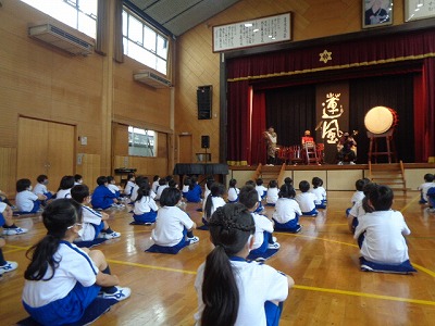 尺八のゆったりした音色と和太鼓で演奏が始まると、ふだんあまり聞き慣れていないけれども「すてきやな~」と感じながら聞いている様子でした。
