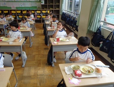 さて、今日の給食のメニューは1年生初めてのパンです。