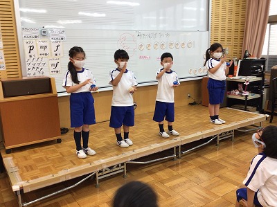 朝の会では、1週間を始めるにあたって、改めてマスクをしっかりつけることや、手の消毒の徹底の確認、1時間目にはハンカチチェック、基本の行いの点検も行いました。