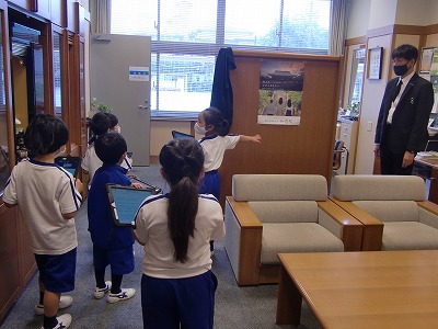 校長室を訪問し、少し緊張気味です。広いお部屋だなあという感想もありました。