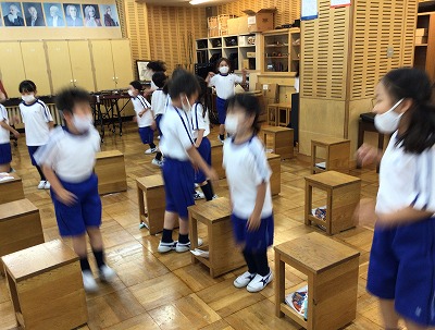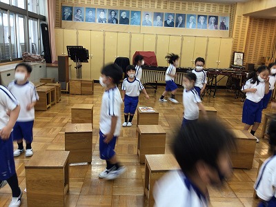 前の時間に「♪しろくまのジェンカ」を歌って、リズムはばっちり!の1年キッズです。