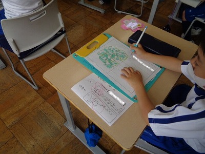 完成した友達のプリントも見ながら、文章や絵で表す良さを感じ取ることができたのではないでしょうか。