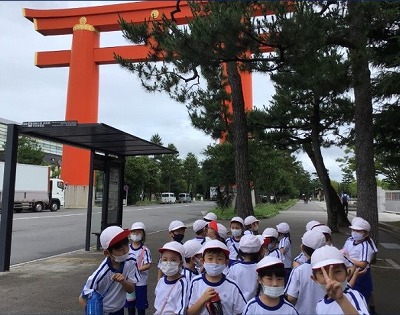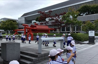 平安神宮前の広場では、ところどころにキノコが生えていて、子ども達を喜ばせてくれました。少し蒸し暑いお天気でしたが、雨の心配も無く、発見の多い探検となりました。