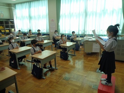 学活は、2学期の全校目標について再度確認して、9月のめあてを考えました。