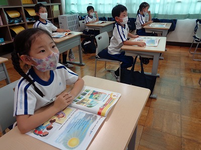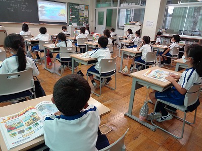 朝方は気温がさほど高くなく、過ごしやすかったのですが、3時間目の体育になると、外はかなり暑くなり、体育が終わると水筒のお茶がなくなったひとが何人かいました。さらに、昼休み後には、10人近くの人がお茶がなくなり、お水を補給するなど、こまめに水分補給することを気をつけました。