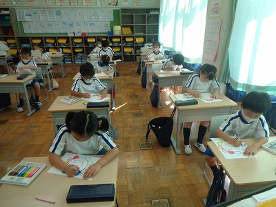今日から、漢字の宿題が始まります。学校では、漢字ドリルと漢字学習ノートの言葉までを進めました。お家では、漢字学習ノートの文章作りの部分を書いてくるのが宿題です。