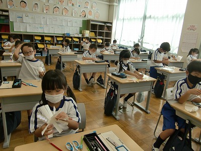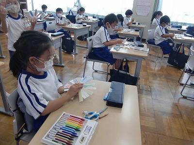 「おもちゃをつくろう」の学習で、風車を作りに取り組みました。