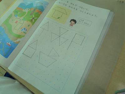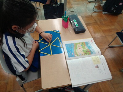 「かたち作り」の学習です。今日は、かぞえ棒を使って、いろいろな形を作りました。
