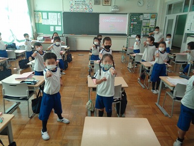 その後、サイモンセズ・ゲームを通して、前回学習した言葉を復習しました。