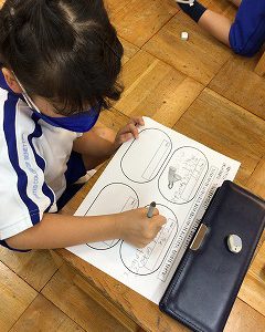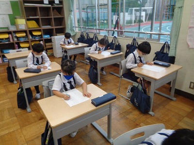 遠足やスポーツフェスティバルに向けて、「協力」についてのお話を聞きました。1年生は、今週の月曜日に遠足のめあてについて考えました。「班長さんの話をよく聞く」をめあてに、メンバーと協力して、楽しい遠足にできるように準備していきたいと思います。