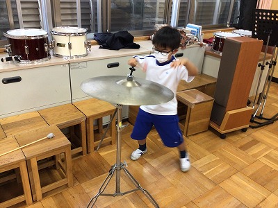 「シンバルを打つときに“マレット”を毛糸に変えると、やさしい音になるよ!」