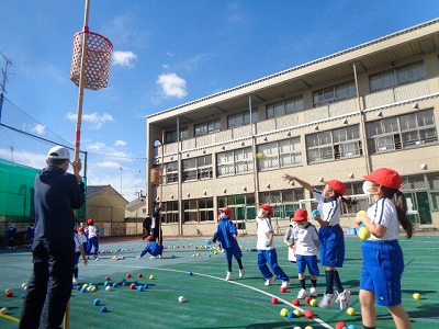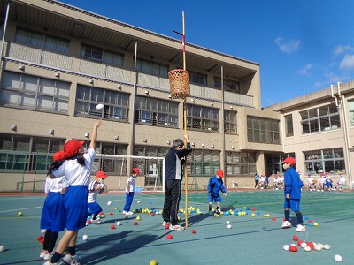 2時間目は、玉入れの練習です。久しぶりの玉入れで、気合い十分!