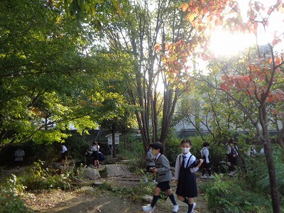 「知らせたいな 見せたいな」の学習では、前回の続きで、学習園やビオトープをいろいろ見て回り、写真に撮っています。