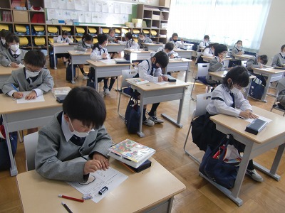 漢字ドリルに書いていない読み方を確認したり、書き順で気をつけるところ、いろいろな言葉を出し合って進めていきました。「白」で出された言葉は「白桃」や「白雪姫」「北白川」「白玉団子」です。