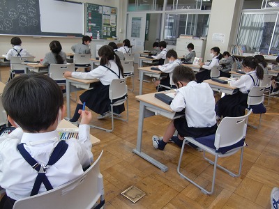 「笑顔をふりかえろう」というテーマで、これまで学習した中では、どんな笑顔があったのかを思い出しました。たくさんの意見が出ましたが、アサガオの芽が出たり、花が咲いたりしたときの笑顔が一番印象に残っているようでした。
