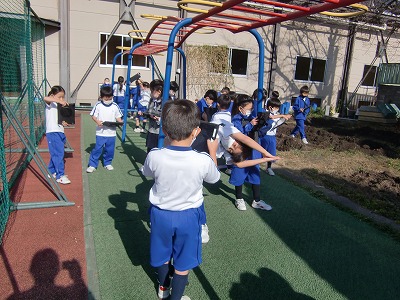 木曜日の朝、根っこマラソンでスタートです。3分間黙々と走りました。少しずつ走る距離が伸びています。