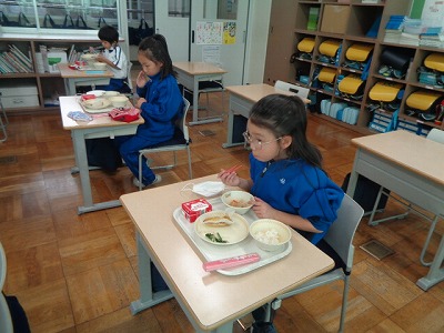給食係さんが、メニュー紹介の後、「1年生が収穫した大根です!」と連絡してくれると、「えっ!?」みんなの目が輝きました。 食べてみると、