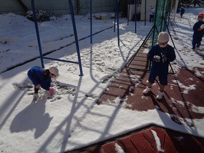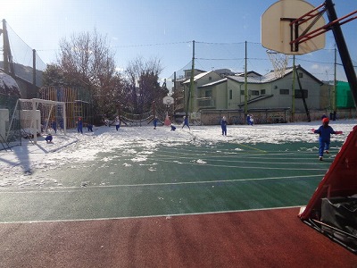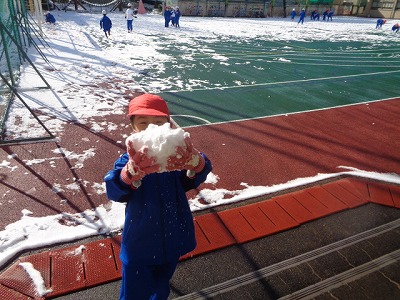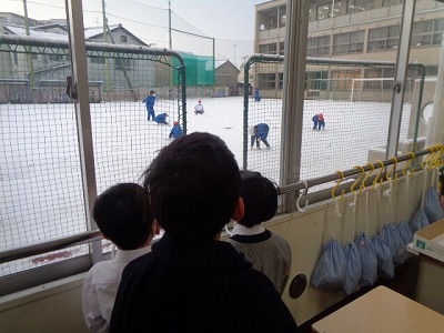教室に登校してくるなり、運動場を見て「スキー場みたい!」と目を輝かせていました。