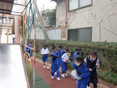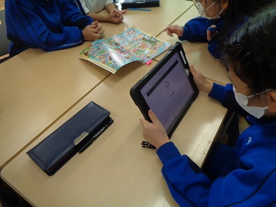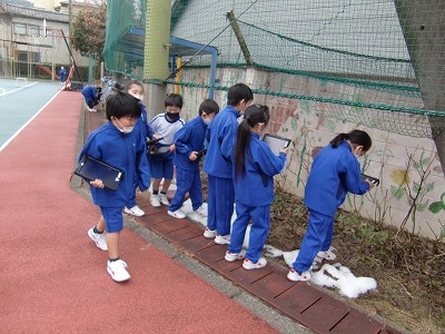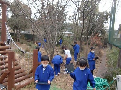 まずは、タブレットを持って運動場へ行き、ロゼットを探して写真を撮りました。その後、教室へ戻って、どんなお花が咲くのかをタブレットを使って調べました。