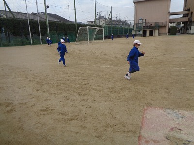 先週のマラソンより少し寒さが和らぎ、準備体操も元気なかけ声で取り組めました。マラソン前に、なわとびの前とびで軽く体をあたためて、3分間走をしました。