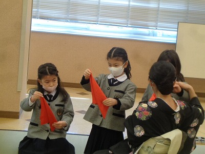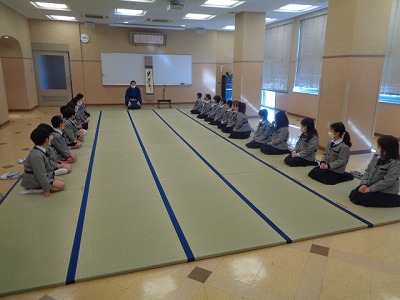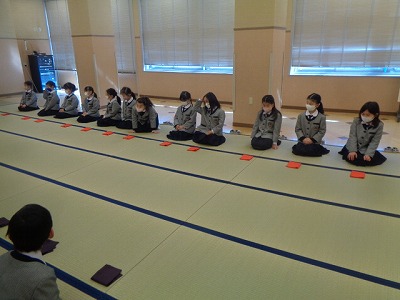 座る場所、お辞儀の仕方を教わり、扇子の置き方と置く場所を知りました。