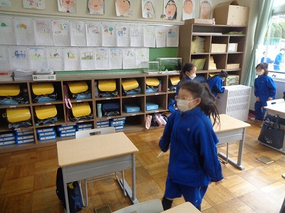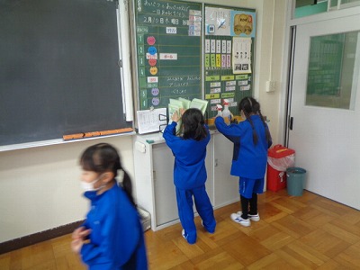 昼休みの様子です。3学期になって新しく活動を始めた「みんな遊び係」の企画で、みんなで宝探しをしました。