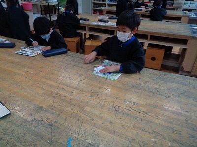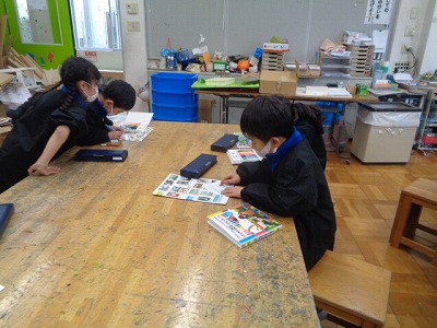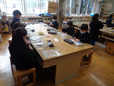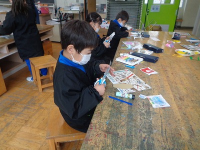 今日の図工は「心をこめてプレゼント」です。お世話になった班長さんに渡すプレゼントを作り始めました。
