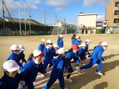 準備体操となわとびで体を少し温めてから、マラソンのスタートです。