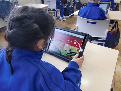 そして、仕上がった人から、iPadで読書をしました。今日は、自分の好きな絵本や図鑑を読んでいます。自分でアクセスして見ることができるようになっています。