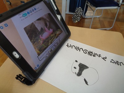 調べる内容によっては、本に文章がのっていないこともあります。本の写真を見ながら、赤ちゃんの様子について自分で文章を考えて書いている様子も見られました。