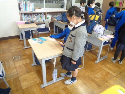 これは、6年生が1年生の時に教室の後ろに掲示していた誕生日カードということがわかると、班長さんの思い出のカードなんだ、と大切そうに持っていてくれました。