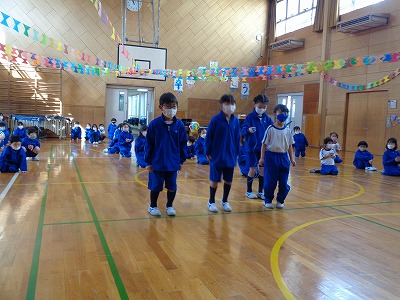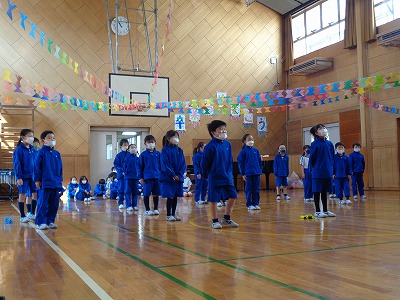 〇×クイズや、なわとびの発表も、6年生にほほえましく見守ってもらう中、無事発表を終えることができました。