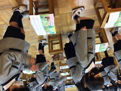 “床打ち”“膝打ち”“両手打ち”の3種類のリズムが続きます。個人練習で、歌とリズムを合わせています。