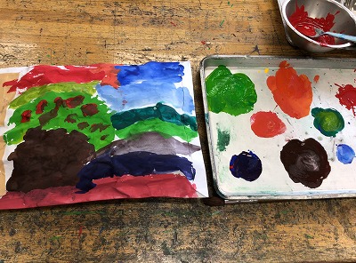 5色を混ぜて、たくさんの色をつくる姿がたくさん見られました。