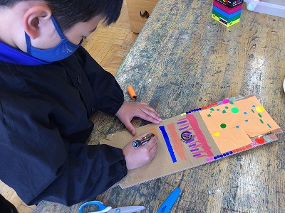 今日つくった<マイ・ミライ・フォン>は文教バックに入れて持ち帰っています。「お家の人に早く見せたい!」や「兄弟にあげるんだ~」という声がたくさん聞こえました。