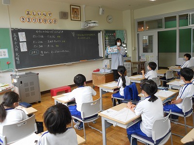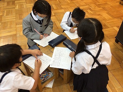 先週、給食の献立表を見て発見したことをもとに、給食の献立や食材について先生に聞いてみたいことを質問しました。