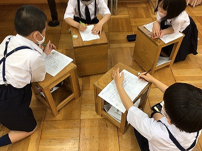 “ものの仲間”が決まれば、“もの”と“音・様子”を話し合います。動物の時以上に、アイディアが求められます。