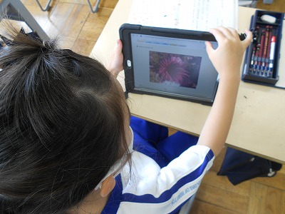 今日は、「スイミー」の中に出てきた「クラゲ」や「イソギンチャク」などの生き物について調べました。