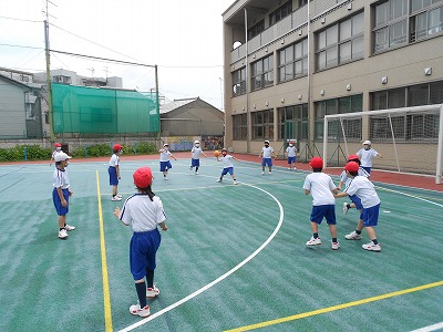 ドッジボールでは、ライン際のボールに対して、じゃんけんをして、どちらのボールにするかを決めている姿も見られます。