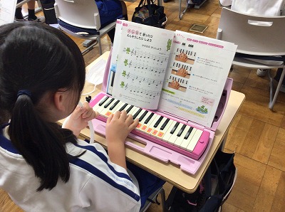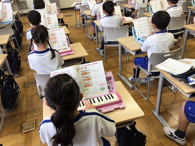 2年生になって初めての鍵盤ハーモニカ学習の時間です。