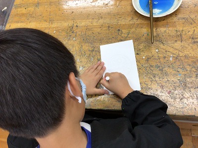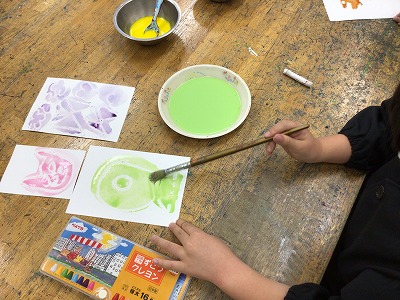 今日の図工は、うきうきするような不思議なお絵かきでした。